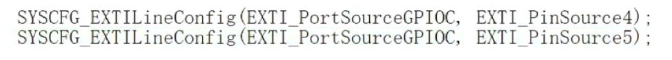 4.使用SYSCFG_EXTILineConfig()选择EXTI线路的输入源引脚:将GPIOC口的引脚4和5设置为中断模式