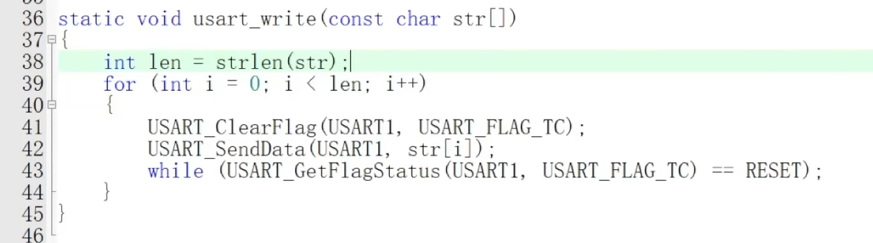 * 一旦数据被写入TDR,USART外设就会自动开始发送过程(加入起始位、停止位等,并通过TX引脚一位一位地发送出去)。此时,TC标志位会被硬件自动清零。
