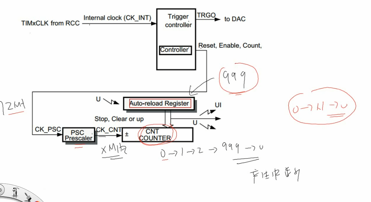 定时器最基本的功能就是计数器,基本定时器结构如下: