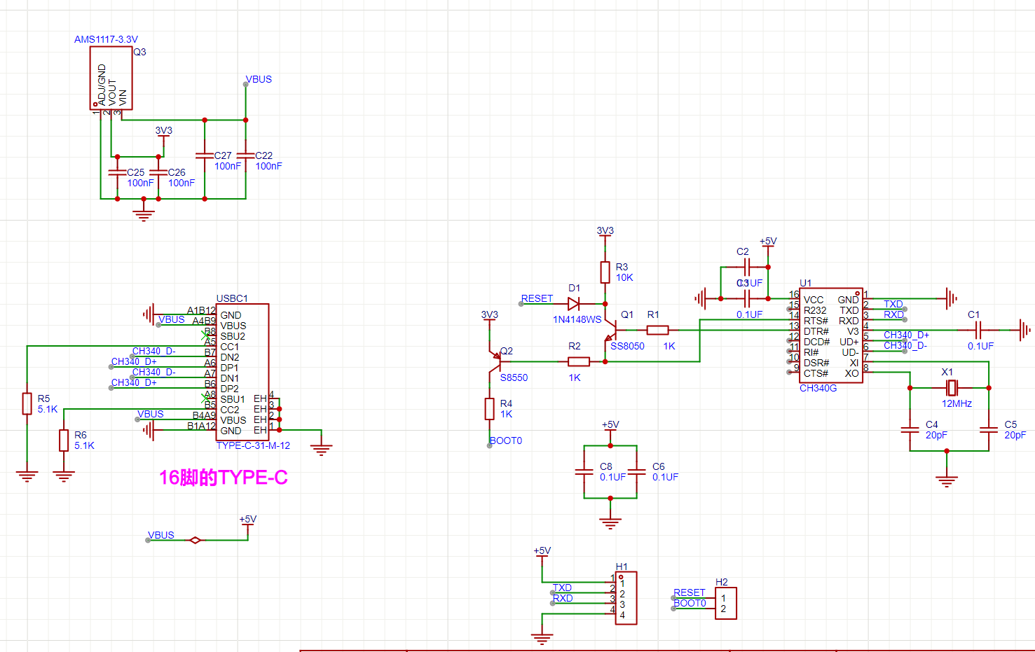 后面的一键下载电路,既可以下载程序,还能当调试串口用、如果是用TYPE-C接口引进来的,还节省了数据线哈哈哈哈