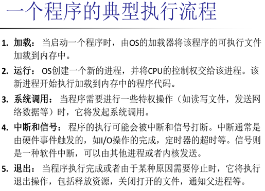 8、OS的启动过程:(1)引导加载程序加载OS内核到内存中;(2)内核初始化:如硬件设备检查,加载驱动,内存管理等;(3)内核启动init进程:该进程是所有其他用户进程的父进程;(4)用户空间程序启动:init进程根据系统的配置,启动一系列的用户空间程序,如Shell,图形界面等。
