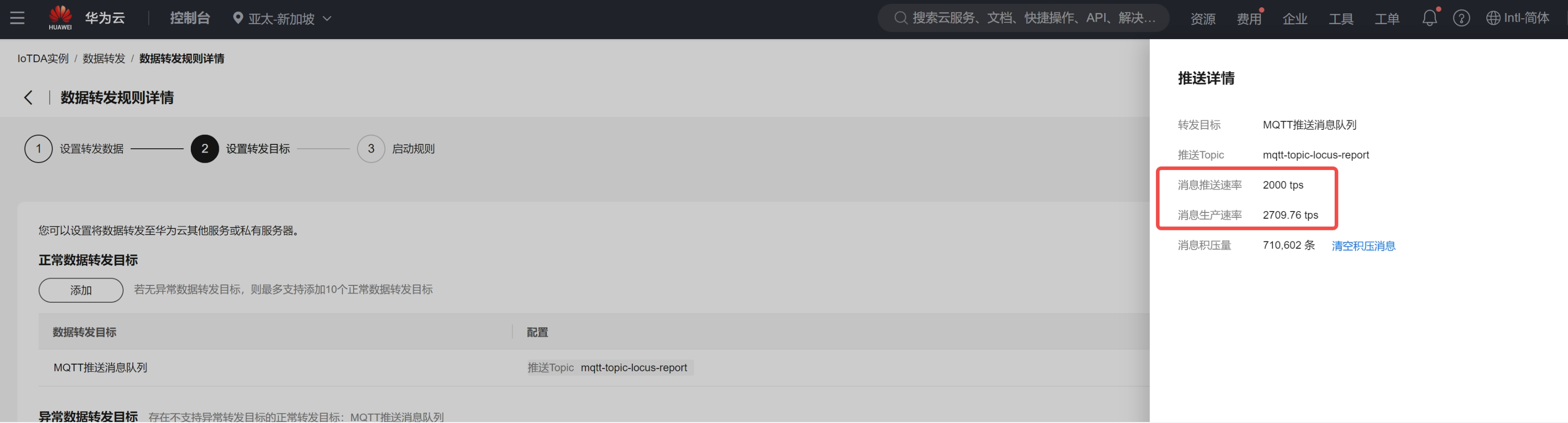 查看华为云iot后台消息转发规则