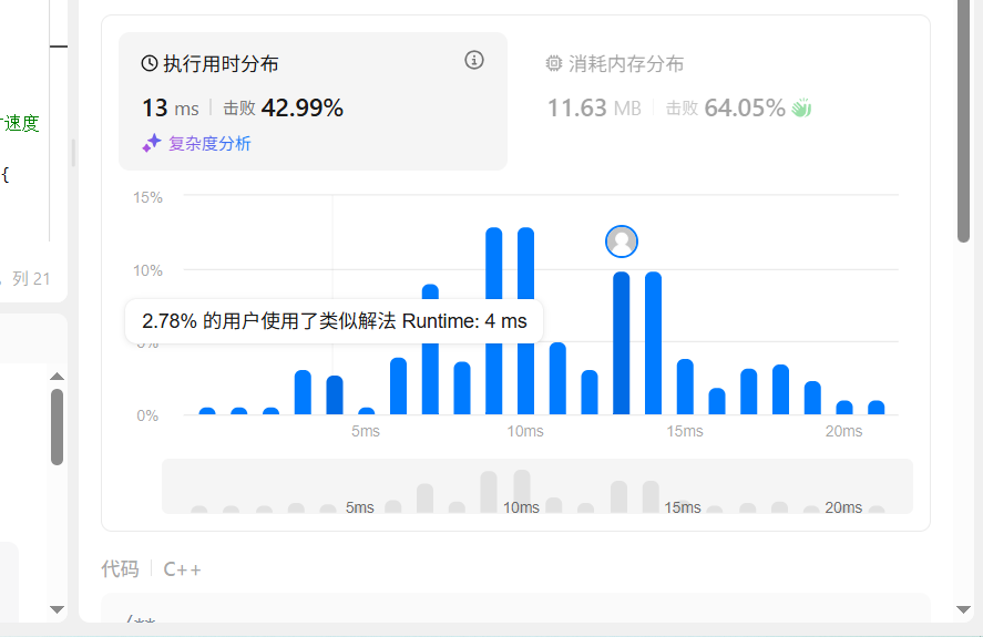 void testLeeCode141(void) {// 环形链表.struct ListNode {int val;ListNode *next;ListNode(int x) : val(x), next(NULL) {}};class Solution {public:bool hasCycle(ListNode* head) {if (!head) return false;// 双指针,步长为2的指针和步长为1的指针。两者相对速度为1,如果有环,快的指针会追上慢指针for (ListNode *slow = head, *fast = head;;) {slow = slow->next;if (!slow) return false;fast = fast->next;if (!fast) return false;fast = fast->next;if (!fast) return false;if (slow == fast) return true;}return false;}};ListNode node3 = ListNode(3);ListNode node2 = ListNode(2);ListNode node0 = ListNode(0);ListNode node4 = ListNode(-4);node3.next = &node2;node2.next = &node0;node0.next = &node4;node4.next = &node2;Solution solution;bool res = solution.hasCycle(&node3);std::cout << "res: " << res << endl;