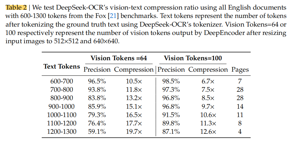 模型能用少量视觉 token 解码出数量超过其 10 倍的文本 token;