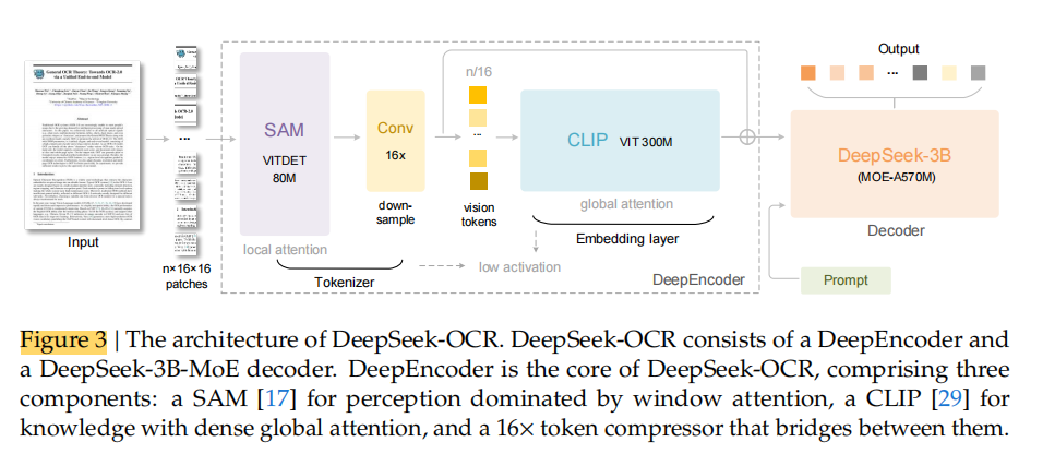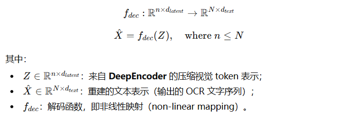 DeepSeek3B-MoE-A570M:作为解码器,用来从压缩后的视觉 token 中恢复文本(即执行 OCR)。