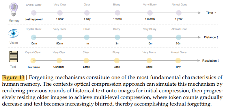 这种思想启发了“视觉化上下文记忆衰减”的设计思路,为未来 LLM 的记忆管理提供了新的理论路径。