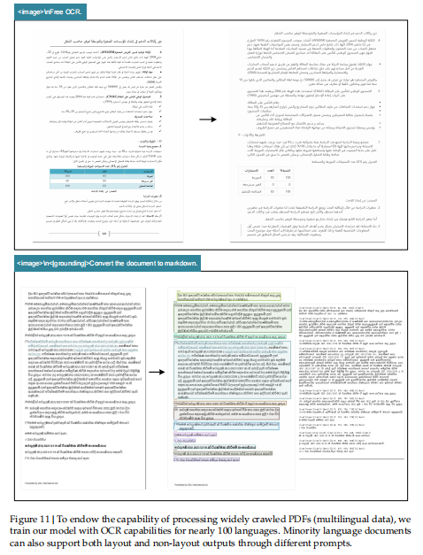 这说明 DeepSeek-OCR 不仅是中英文 OCR 模型,而是一个通用多语言光学识别系统,适合全球文档场景。