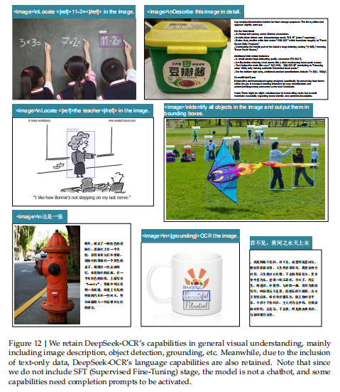 这些任务全部通过 统一的 prompt 格式 实现,显示出 DeepSeek-OCR 在多任务场景下的通用性与一致性。