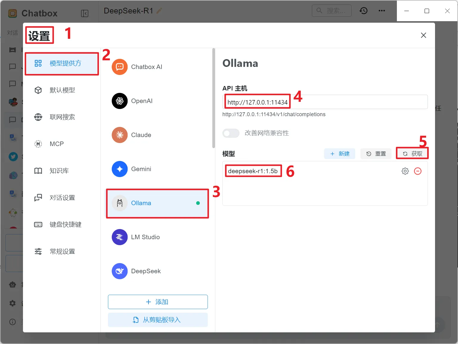 - Chatbox 连接到 Ollama 的本地端口(一般是 11434);