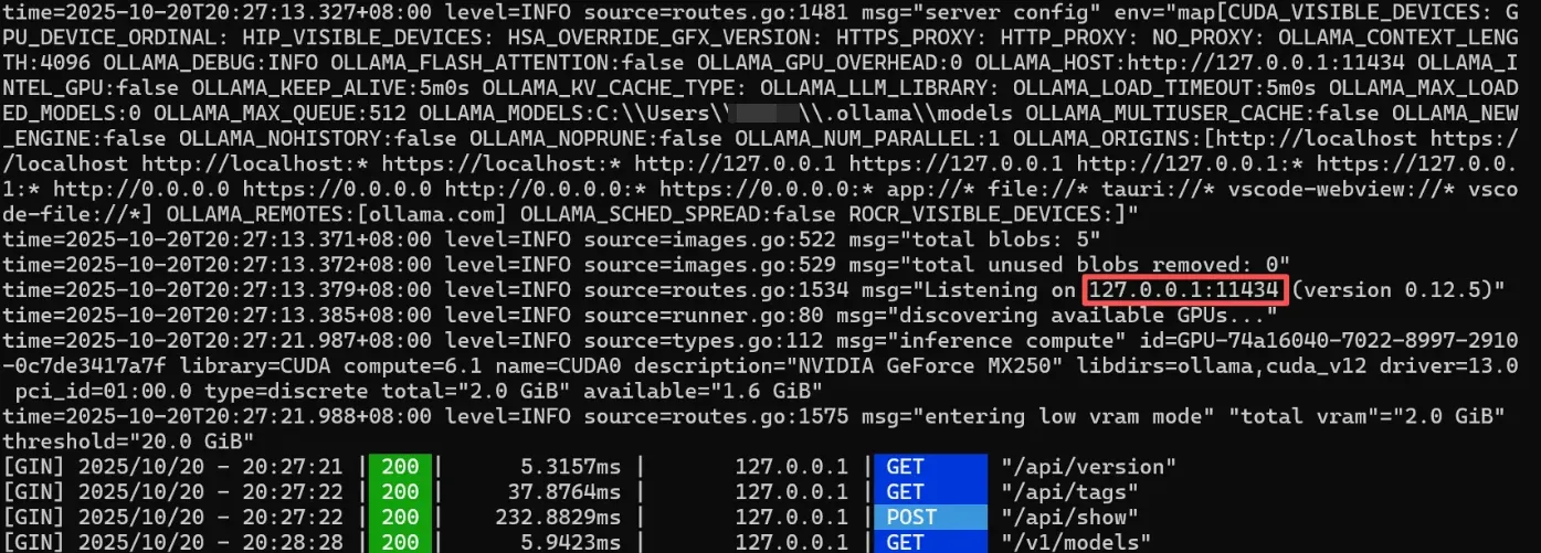 从上述启动Ollama后,日志中暴漏的API(上图红色框选位置)填入配置即可。
