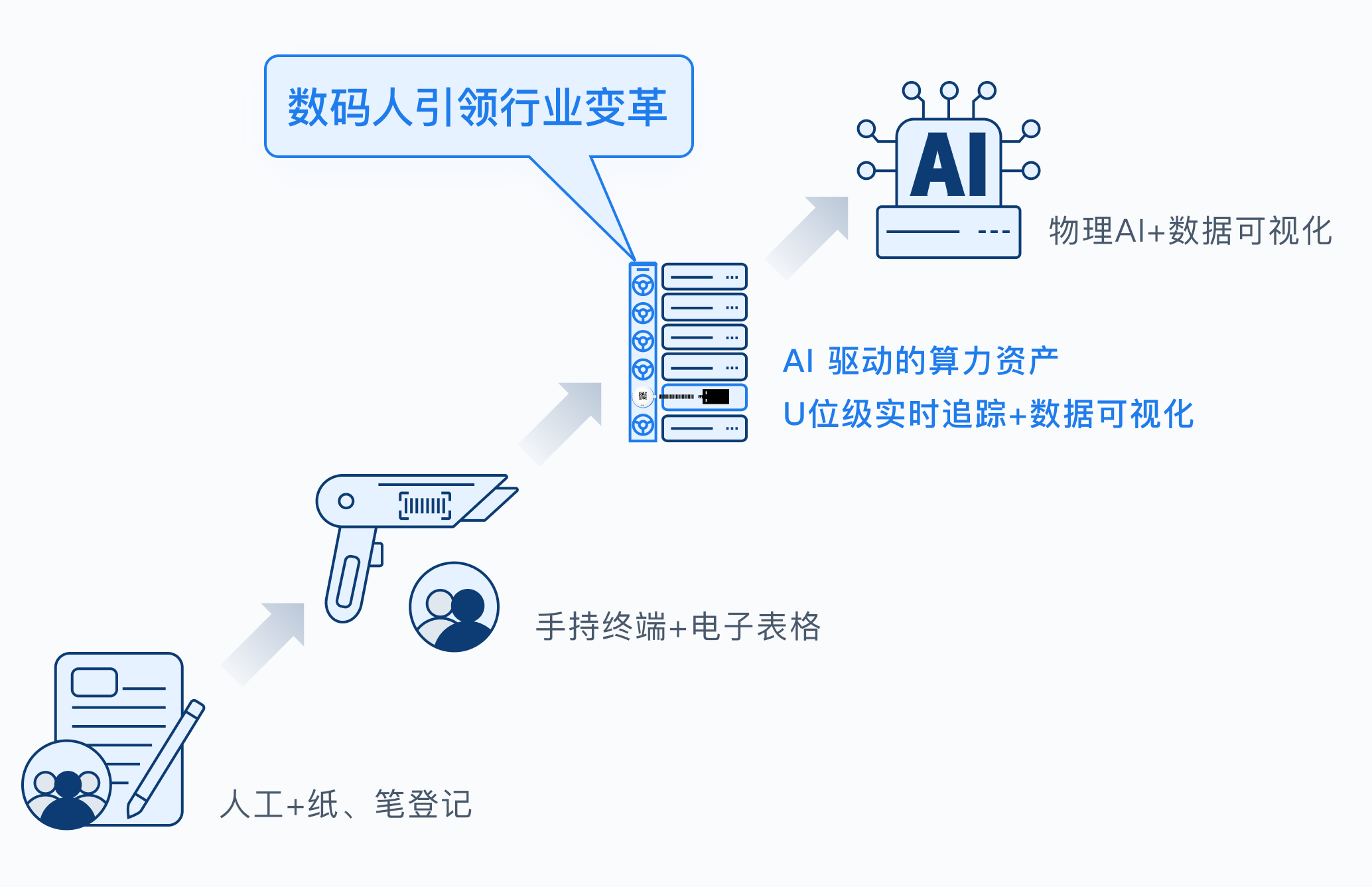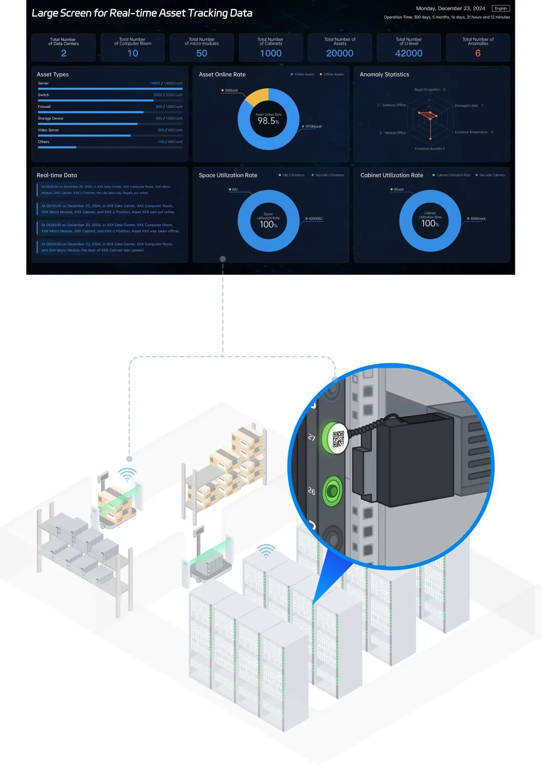 数码人U位资产实时跟踪和盘点解决方案,帮助客户实现算力资产的实时感知,实时追踪,实时运营
