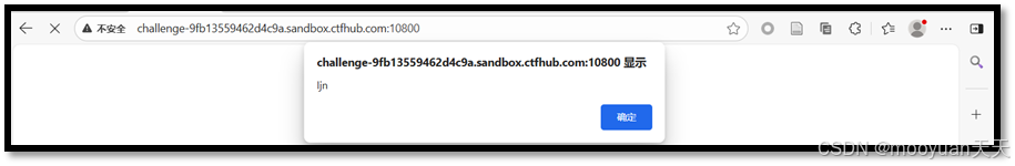 打开靶场,在关卡页面中寻找所有可能的用户输入点,在第一个输入框内尝试输入最简单的测试载荷<script>alert("ljn")</script>,并观察页面响应。其中<script>标签用于定义客户端脚本,alert("ljn")是 JavaScript 代码,作用是弹出一个包含 “ljn” 文字的警告对话框。