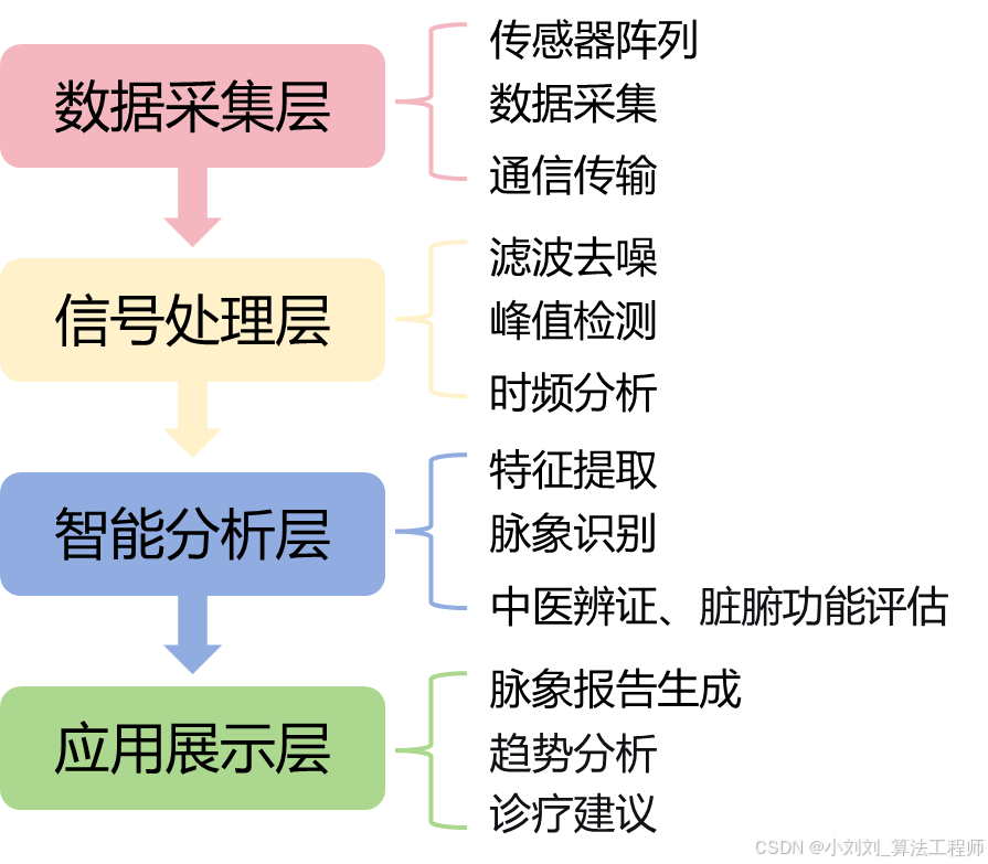 本系统采用模块化设计,包含信号采集、预处理、特征提取、脉象识别和体质辨识五个核心模块,系统架构如图1所示。