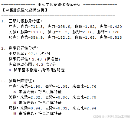 本文成功设计并实现了一套多传感器融合的脉象智能分析与识别系统,为克服传统中医脉诊主观性强、难以量化的问题提供了完整的工程技术解决方案。 该系统实现 “从脉象数据采集→多维度量化→中医体质 / 脏腑评估→辨证建议” 的完整闭环,既解决了传统脉诊主观化问题,又通过 “技术指标 - 中医理论” 的深度关联,让数字化脉诊真正服务于临床辨证,为中医现代化、标准化提供了可落地的技术范式。