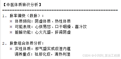 构建了脉象-体质-脏腑功能的关联模型,能将量化脉象特征反向映射为“阴虚”、“气郁”、“血瘀”等体质状态,并对寸、关、尺三部对应的脏腑(心肺、肝胆脾胃、肾)功能进行评估,真正实现了从数据到中医辨证的跨越。