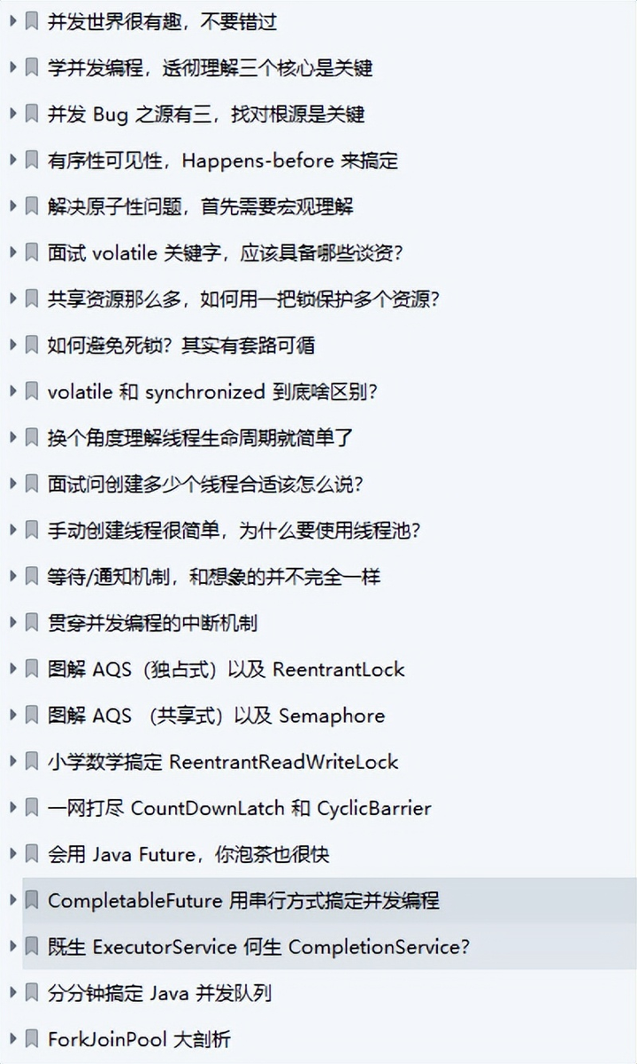 PS:并发编程还是所有Java初中级跨越至高开必须要迈过的一个槛。很多粉丝就经常跟我反馈,虽然意识到了并发编程对于Java程序员的重要性,平时也有投入时间学习,但要是按部就班的真正从零开始学的话又没那么多时间,所以一直以来就想找到一份权威的,涵盖并发编程所有的核心点的PDF总结,这样学习起来能大大的提高效率,也能加深自己对多线程的理解。这不,说什么来什么,为了满足广大粉丝们的需求,也感谢一直以来粉丝对我的无私支持,今天LZ就为大家带来了一份阿里巴巴2025最新并发编程全优笔记,如下所示: