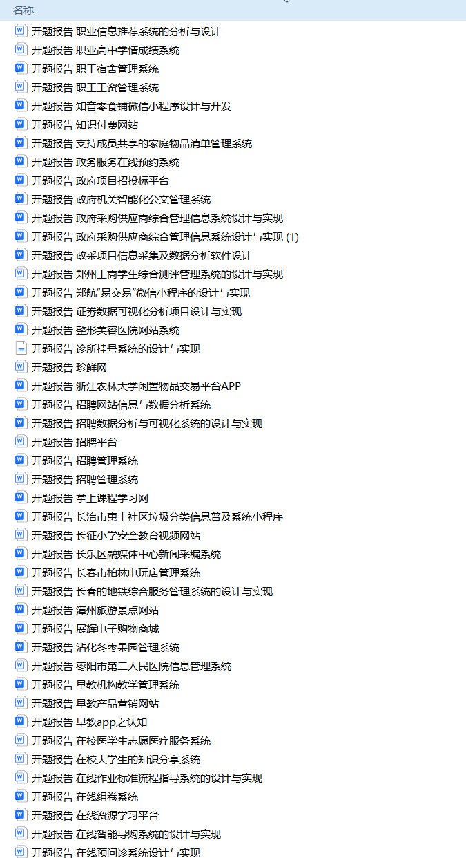 以上是H同学的毕业设计答辩过程,如果你现在还没有参加答辩,还是开题阶段,已经选好了题目不知道怎么写开题报告,可以下面找找有没有自己符合自己题目的开题报告内容,列表中的开题报告都是往届真实的开题报告可参考。
