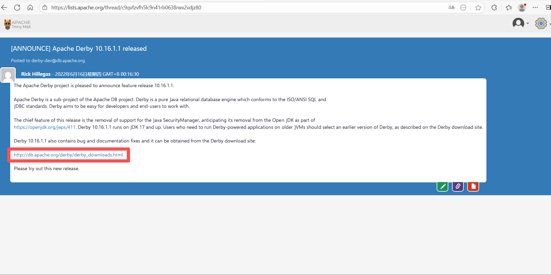 <dependency><groupId>org.apache.derby</groupId><artifactId>derbyclient</artifactId><version>10.14.2.0</version>