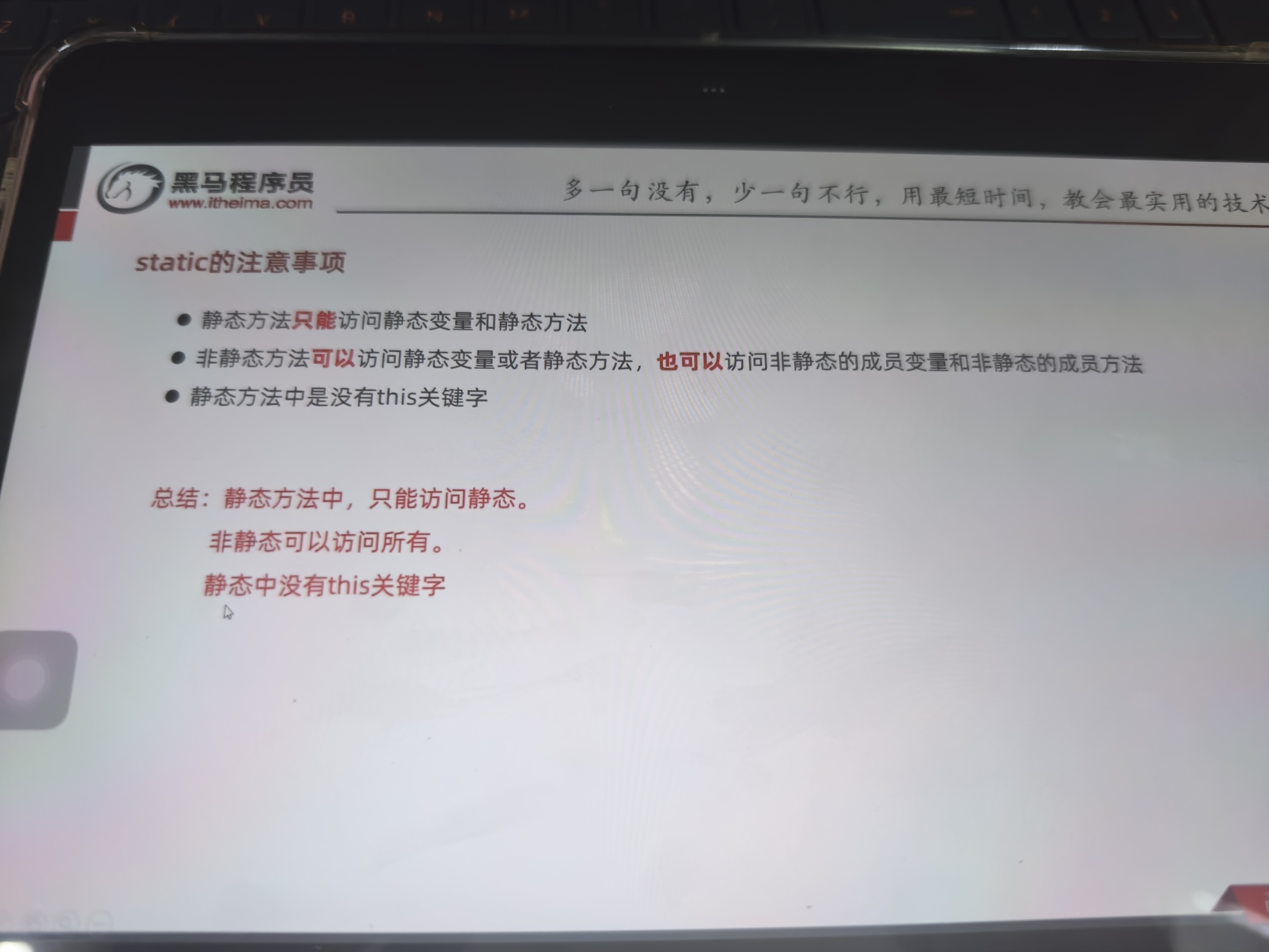 访问成员的权限 只能直接访问静态成员(静态变量、静态方法),不能直接访问实例成员(因为实例成员属于对象,调用静态方法时可能还没有对象) 可以直接访问静态成员 + 实例成员(调用时对象已创建,能关联到对象的实例数据)