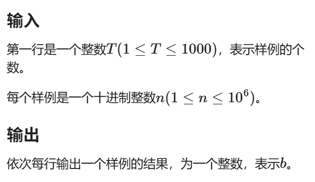 int main(){int T;scanf("%d",&T);while(T--){int n;scanf("%d",&n);for(int i=2;i<=n+1;i++){int rank[128]={0};int t=n,cnt=0;while(t){rank[cnt]=t%i;t=t/i;cnt++;}if(rank[cnt-1]==0) continue;int flag=1;for(int j=0,k=cnt-1;j<k;j++,k--){if(rank[j]!=rank[k]){flag=0;break;}}if(flag){printf("%d\n",i);break;}}}