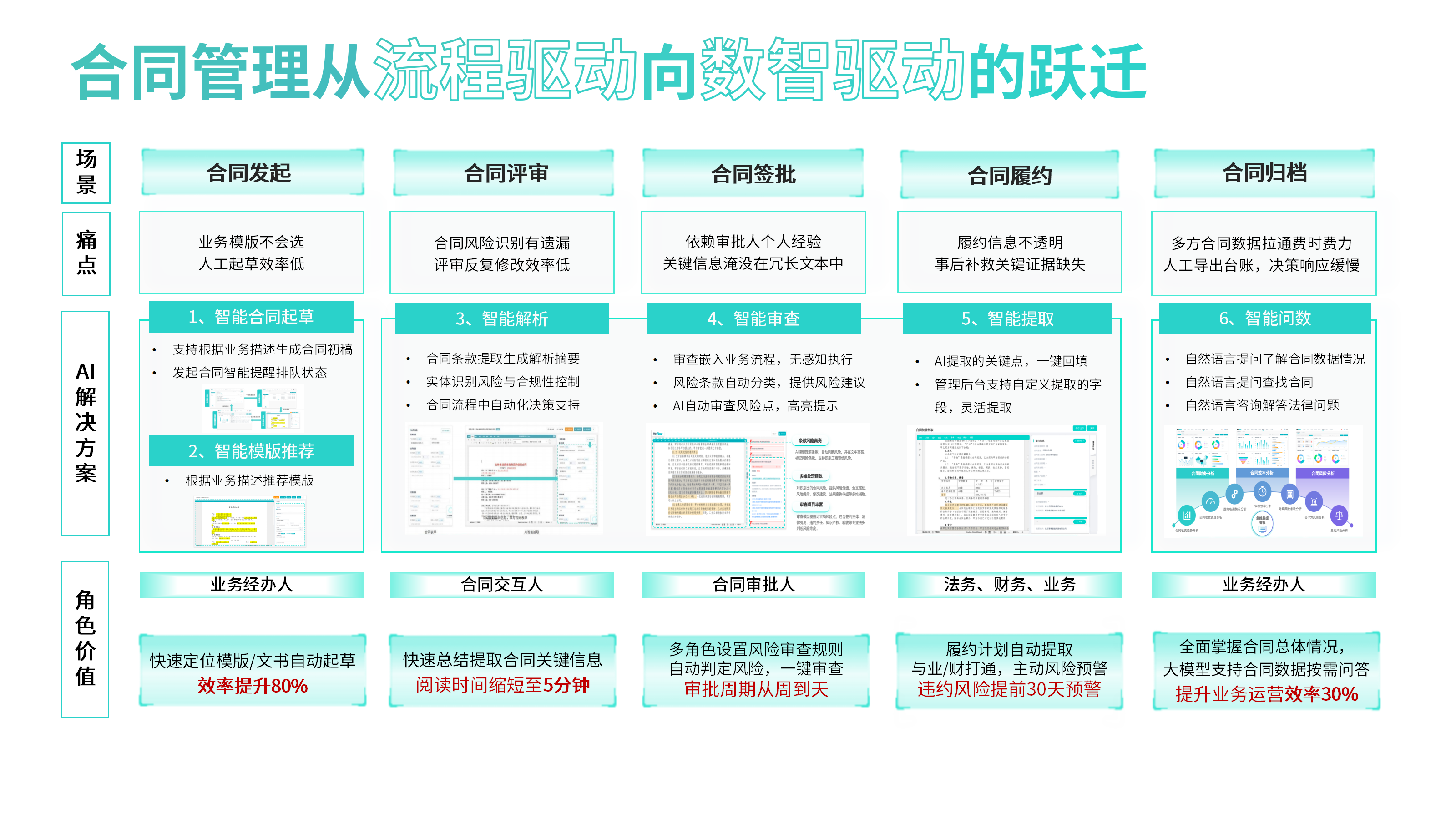 AI技术对合同管理的改造,远不止于审查效率的提升,更是实现了从"流程驱动"到"数智化驱动"的根本性跃迁,这种跃迁为企业带来了三重核心价值: