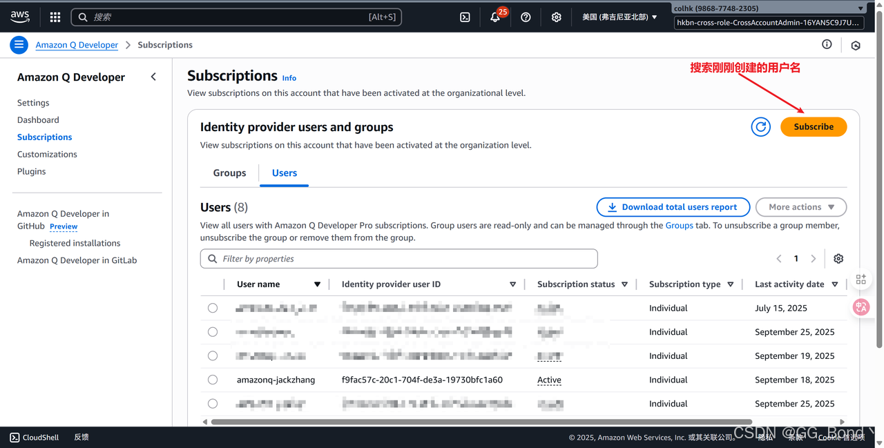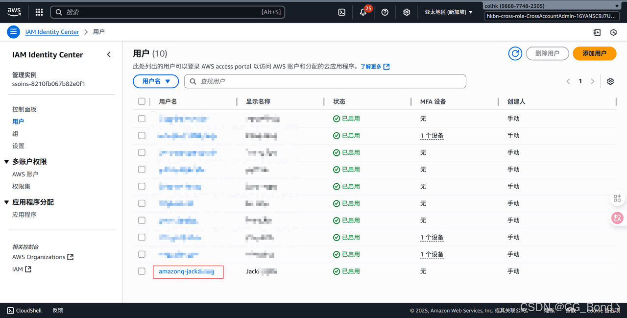 1. 在 IAM Identity 创建 Amazon Q 用户