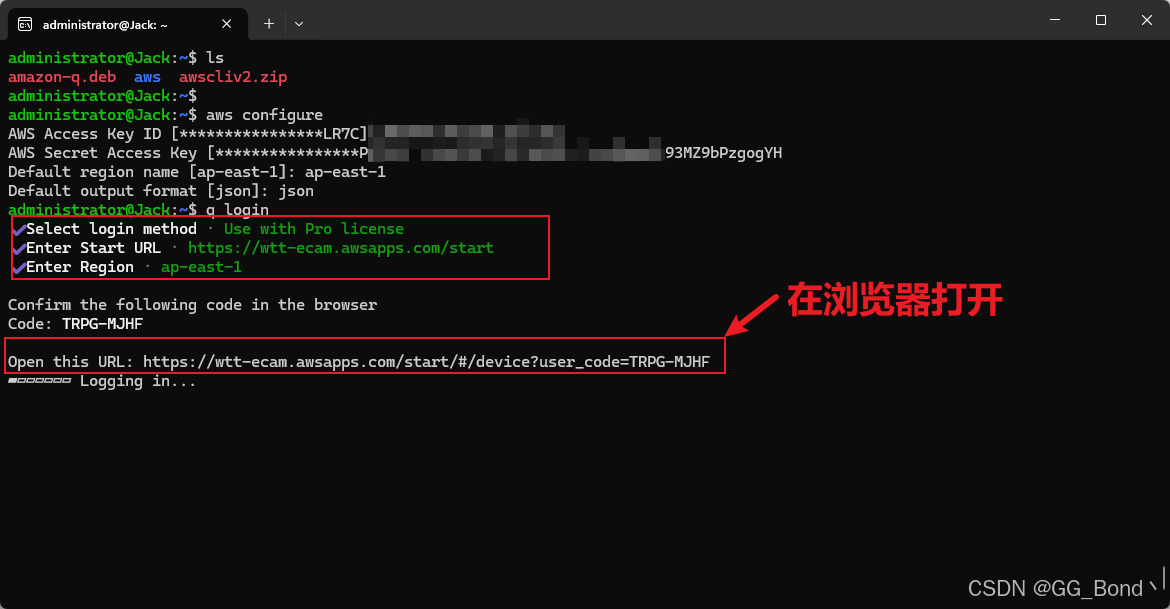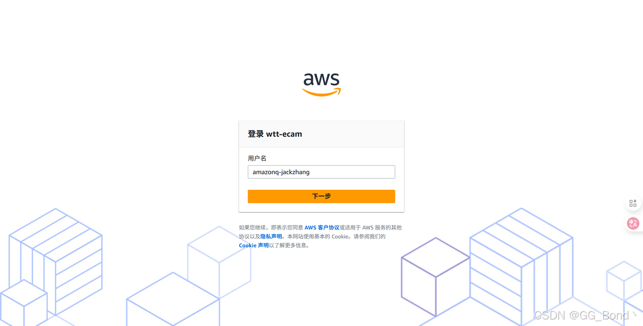 3. 登录 Amazon Q,region 是用户名所在的区域