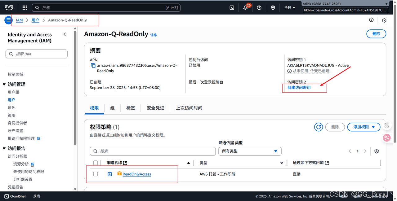 3. 配置 AWS CLI,创建一个只有 ReadOnly 权限的用户,并创建访问密钥
