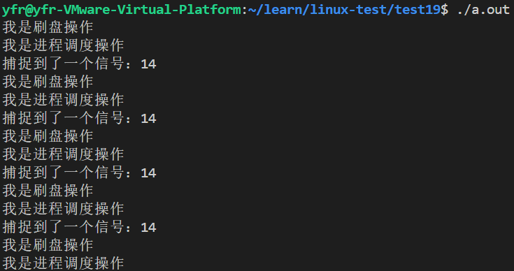 {cb.push_back(FlushDisk);cb.push_back(Sched);signal(SIGALRM,handler);alarm(1);while(1){pause();//等待信号}return 0;