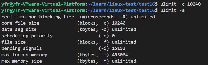 ulimit -c [数值] #设置核心转储文件的最大大小