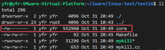 我们写一段有错误的代码,现在我们再次运行有错误的文件,就能看到core文件了。