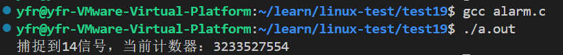 {signal(SIGALRM,handler);alarm(1);while(1){pause();//等待信号}return 0;