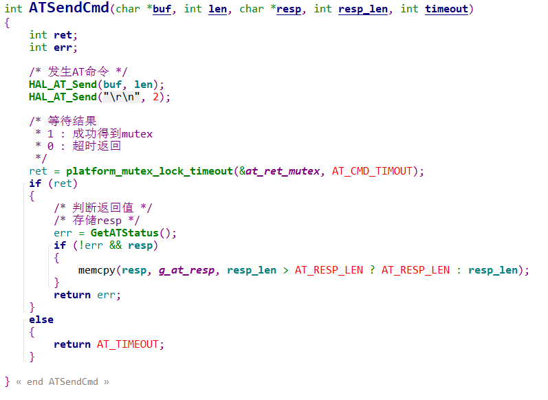 client_parser(): 主解析循环at_recv_readline(): 读取一行数据自动区分响应数据和URC数据