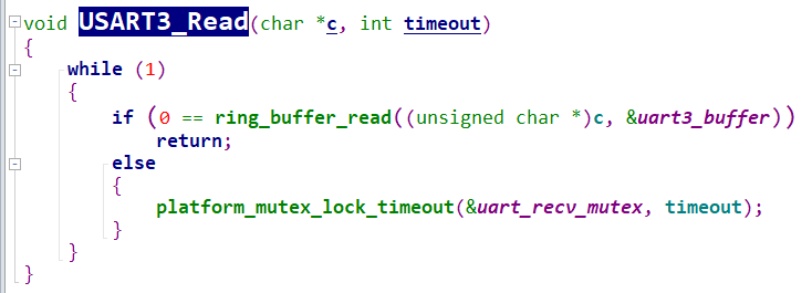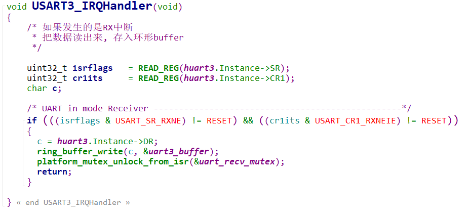 当有数据输入串口时,串口中断(stm32_uart3.c)会释放信号量,唤醒解析线程: