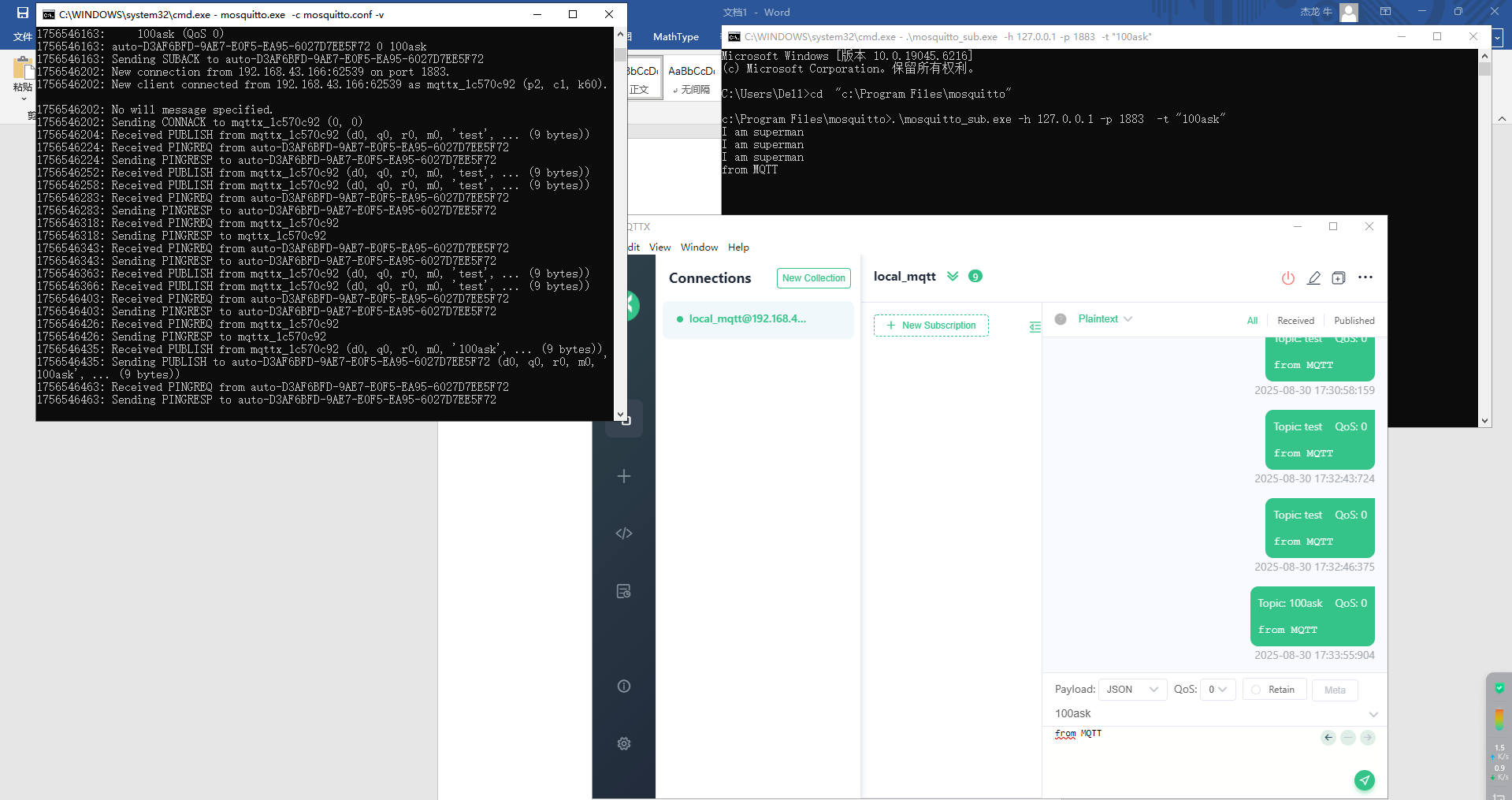 左边发布主题,右边订阅主题topic,下面是MQTT服务器