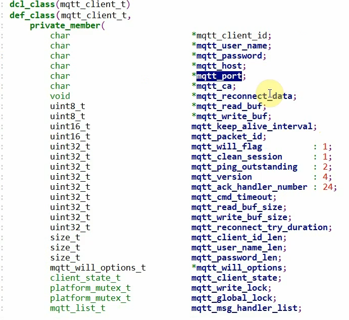 所以上面代码实现的含义是将结构Client中成员mqtt_port="1883":