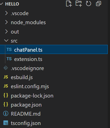 import { ChatPanel } from './chatPanel';const openChatDisposable = vscode.commands.registerCommand('hello.openChat', () => {ChatPanel.createOrShow(context.extensionUri);