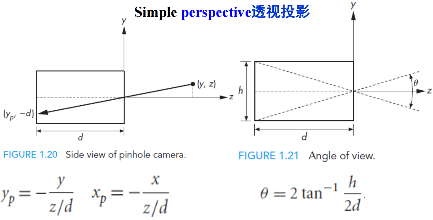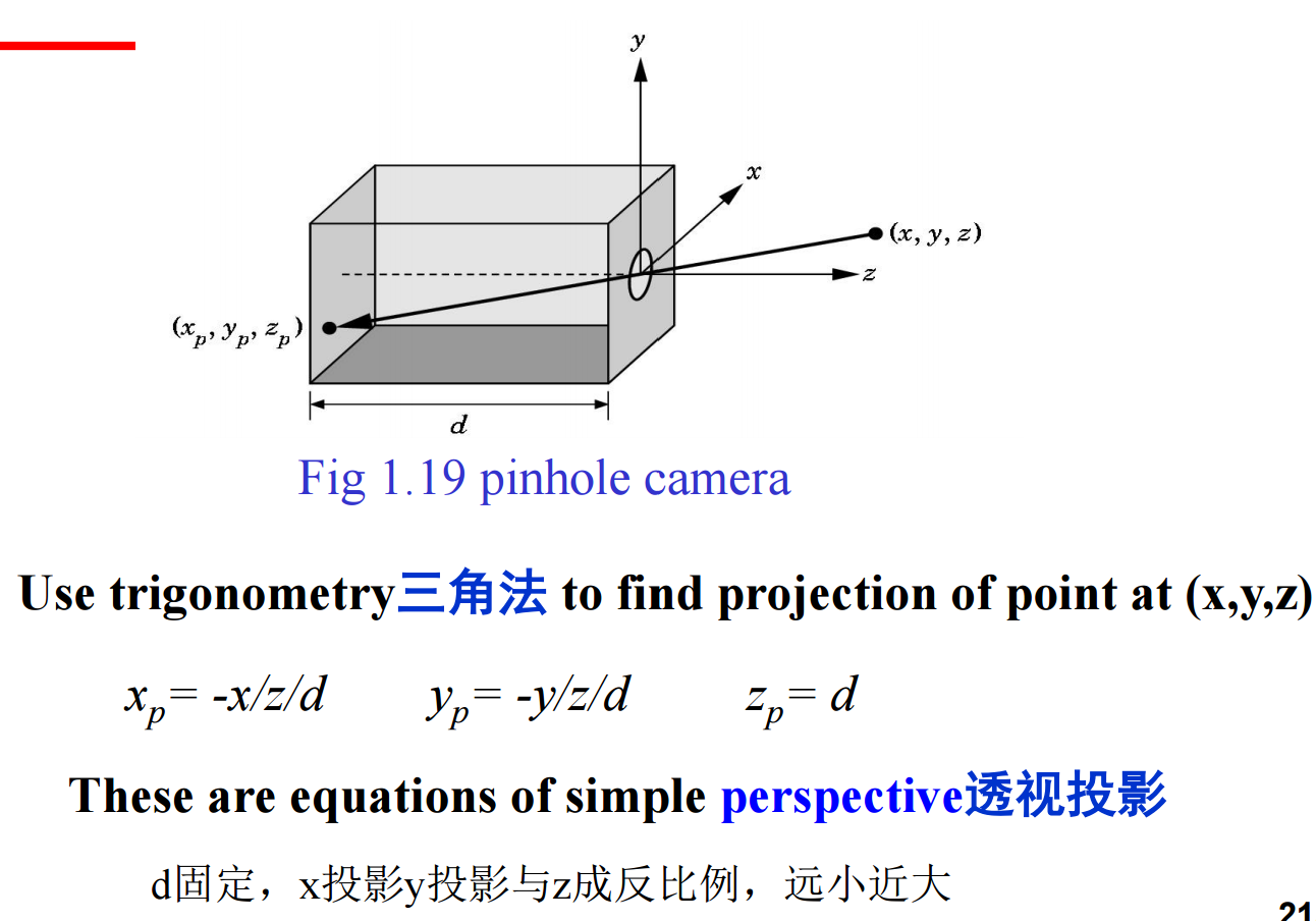 4、针孔照相机Pinhole Camera的原理,透视投影如下图所示。