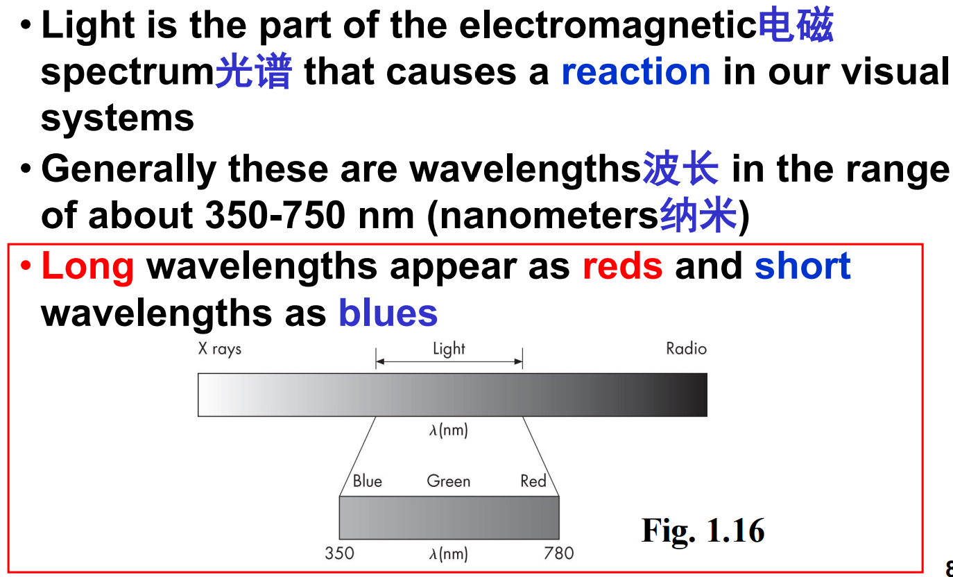 6、人类视觉系统有两种类型的传感器:①杆状细胞(Rods)是单色的,负责夜视;②圆锥细胞(Cones)对颜色敏感,只有三种类型的锥体,对应只有三色值被发送到大脑——只需匹配这三个值。