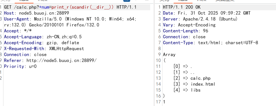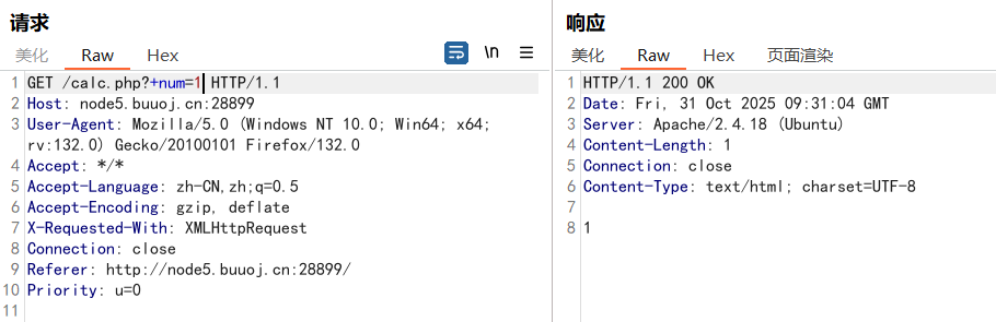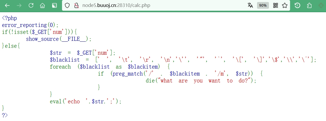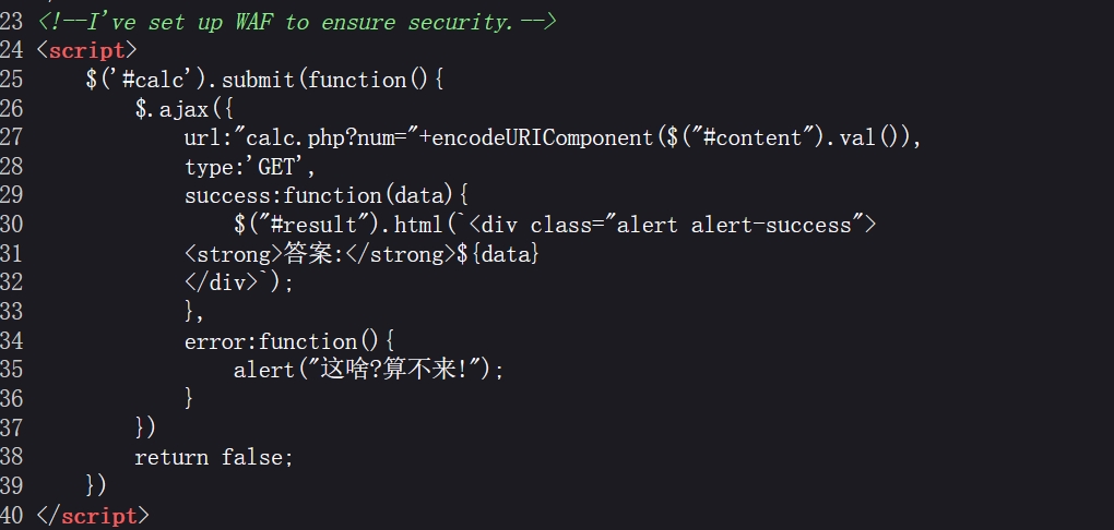 查看一下页面源码,发现页面 /calc.php 以及WAF