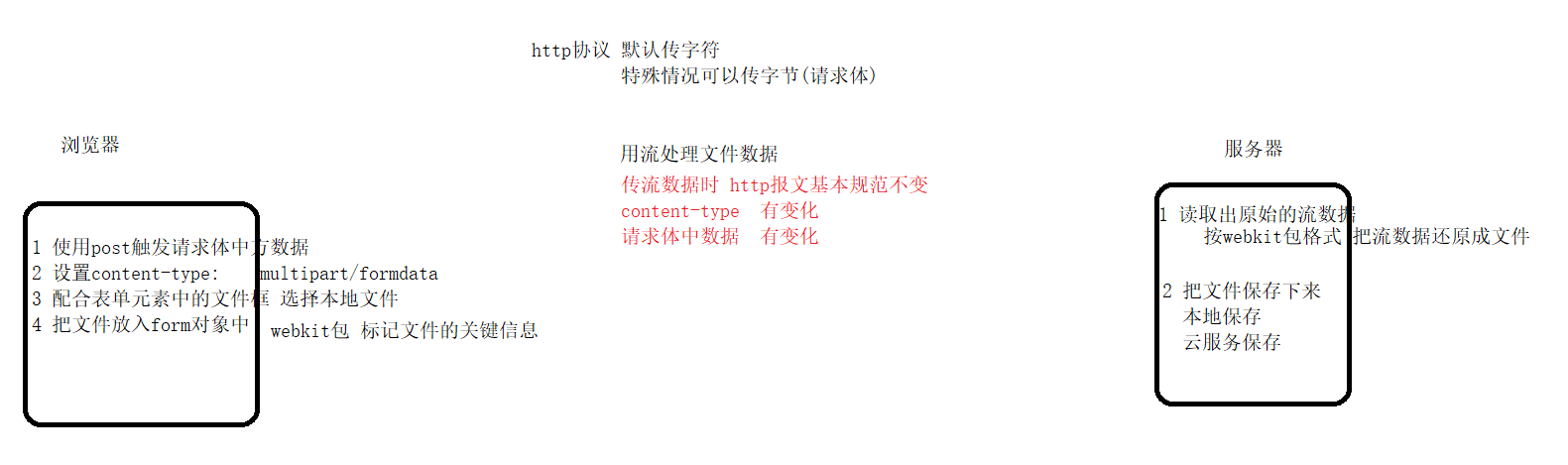 /** 1 使用文件框选文件* 2 文件放入FormData对象中 支持字符串key value 支持文件 key blob* 3 通过post请求发送FormData** */