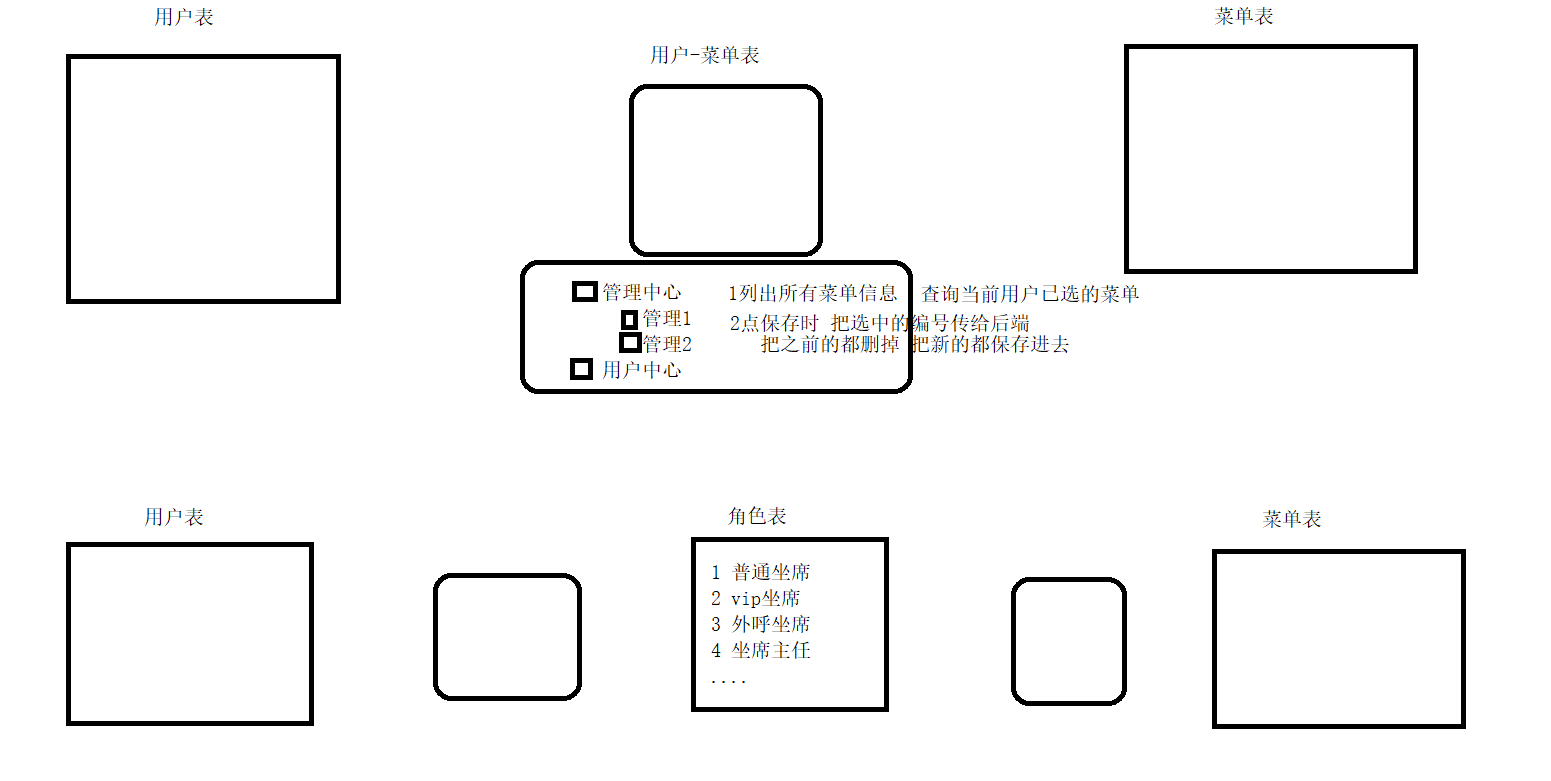 -- 展示树型菜单 和 根据用户编号选中已有菜单选项 select am2.*,am1.mid as submid,am1.menuname as submenuname,am1.url as suburl from admin_menu am1 inner join admin_menu am2 on am1.pid = am2.midselect mid from rel_admin_user_menu where uid = 7 -- 删除旧的权限信息 添加新的信息 delete from rel_admin_user_menu where uid = 3 insert into rel_admin_user_menu (uid,mid) values (3,11001),(3,12001),(3,13001)