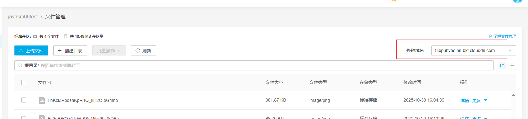 const myUpload = async (rowFile)=>{ console.log(rowFile);//获取上传文件let myFile = rowFile.file//创建formData对象let formData = new FormData();formData.append('myFile',myFile);//发送post请求let resp = await axios.post("/upload",formData)insertForm.headImg = resp.data.returnData}2.3存到云存储