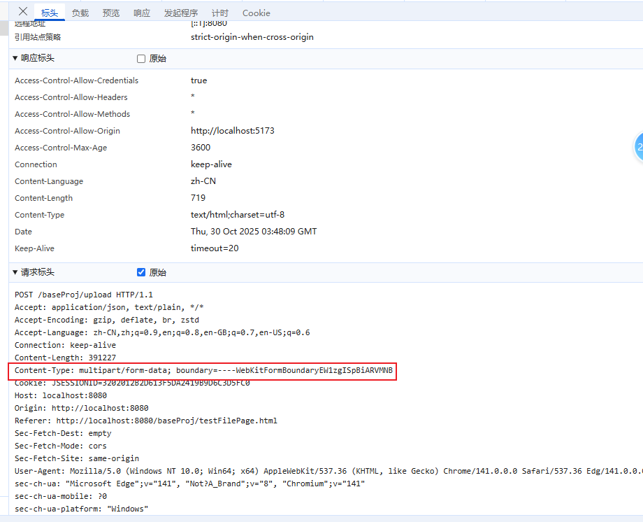 const testSend = ()=>{let currentFile = document.getElementById("myFile").files[0]console.log(currentFile)let formData = new FormData();//在请求体中的keyformData.append("myFile",currentFile)axios.post("/baseProj/upload",formData)