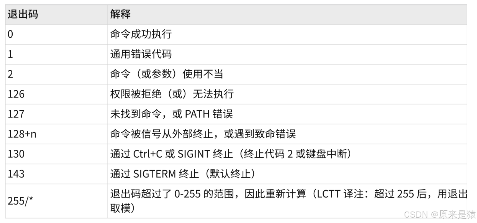 下面是一些常见的 Linux Shell 退出码及其含义: