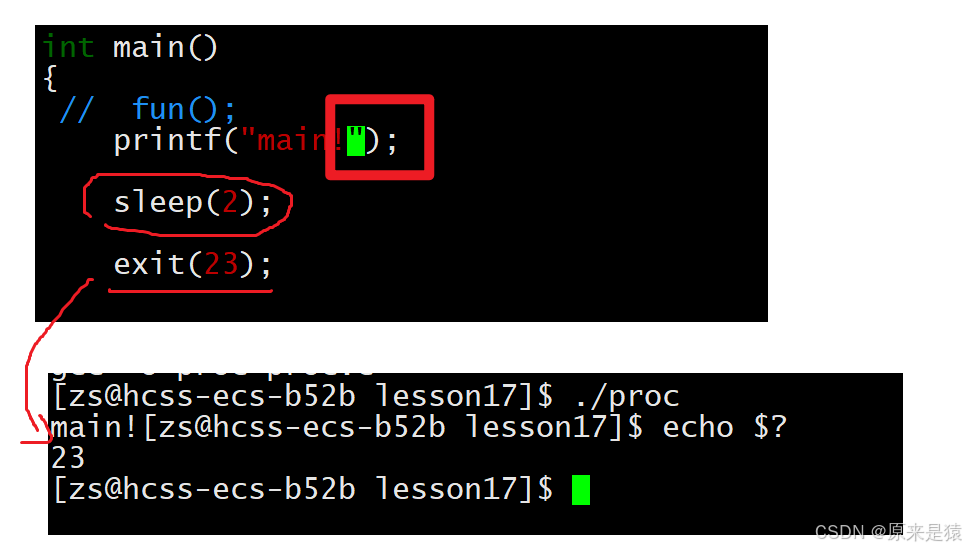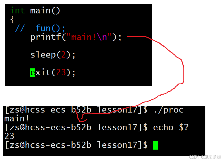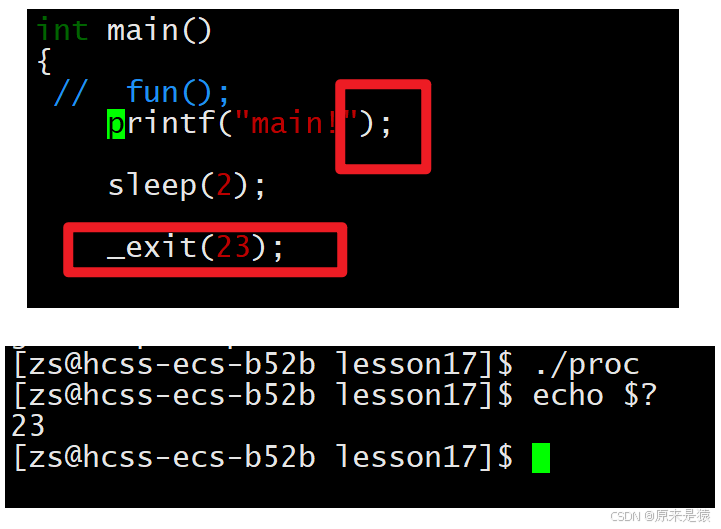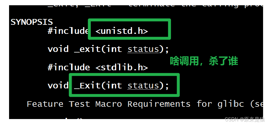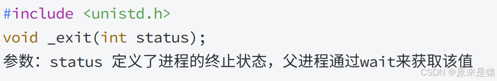需要注意的是,虽然status是int类型,但只有低 8 位会被父进程通过wait函数获取。所以,如果_exit(-1),在终端执行echo $?会得到 255(因为 - 1 的低 8 位二进制是 11111111,对应的十进制是 255)