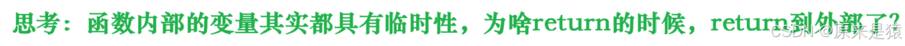 函数内部的变量(比如局部变量)是 “临时” 的 —— 函数执行结束后,这些变量会被销毁,内存会被回收。那return是怎么把值 “传出去” 的呢?