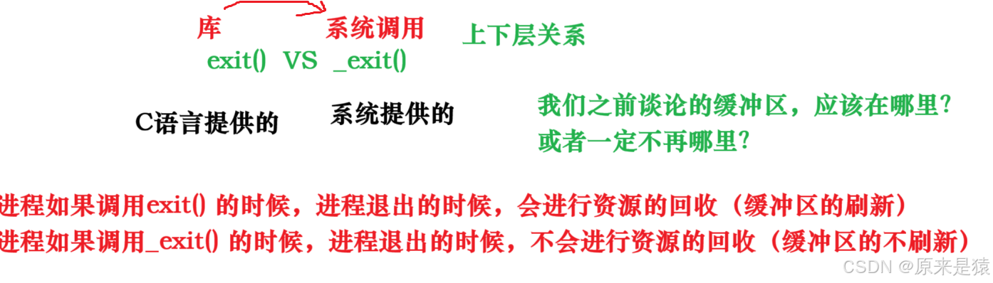 库函数和系统调用其实是上下层的关系(语言上看起来是调用了exit()这个库函数,其实底层有用到_exit()函数,因为这个世界上能真正杀死进程的,就只能有bash!!! 所哟exit()函数内部必然包含了_exit()!!!!)