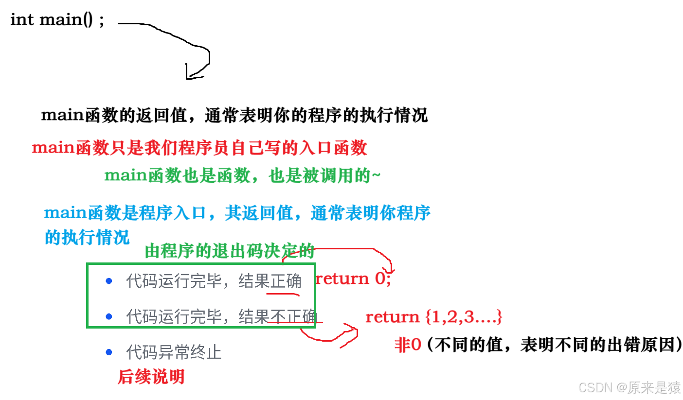 为什么代码运行完毕 , 结果不正确 ,为什么返回非 0 ,而正确为什么是0 ?